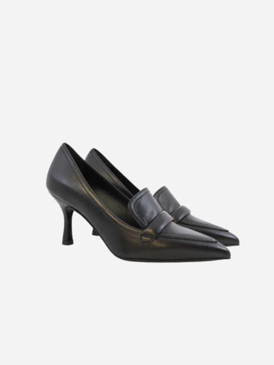 Mocassino con tacco AN802 di Noa. Scarpa realizzata in vera pelle con fondo in cuoio e suola in materiale sintetico di qualitร . Linguetta in stile mocassino. Tacco a rocchetto di 7,5 cm. Le calzature firmate Noa sono interamente Made in Italy, caratterizzate da linee semplici, eleganti e femminili. Adatte a ogni look, donano un tocco chic alla quotidianitร .