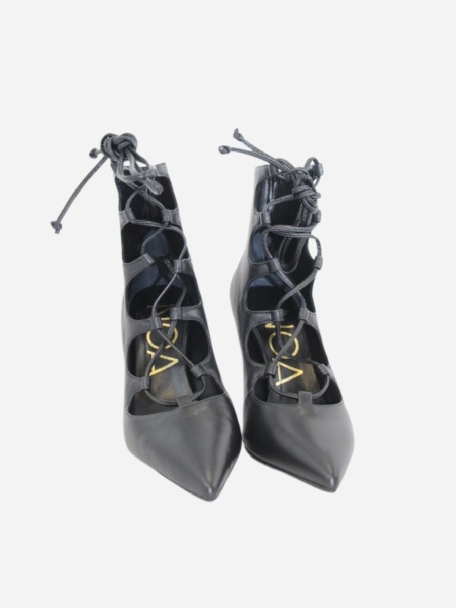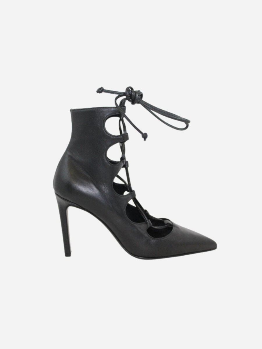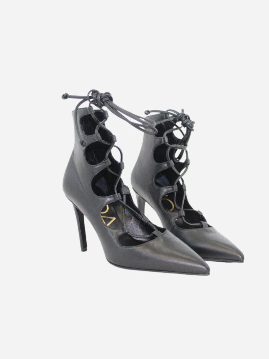 Scarpe alte con lacci by Noa. Scarpe realizzate in vera pelle con fondo in cuoio e suola in materiale sintetico. Scarpe caratterizzate da lacci lungo tutto il piede, che garantiscono una maggiore aderenza. Tacco a spillo di 9 cm. Le calzature firmate Noa sono interamente Made in Italy, caratterizzate da linee semplici, eleganti e femminili. Adatte a ogni look, donano un tocco chic alla quotidianitร .