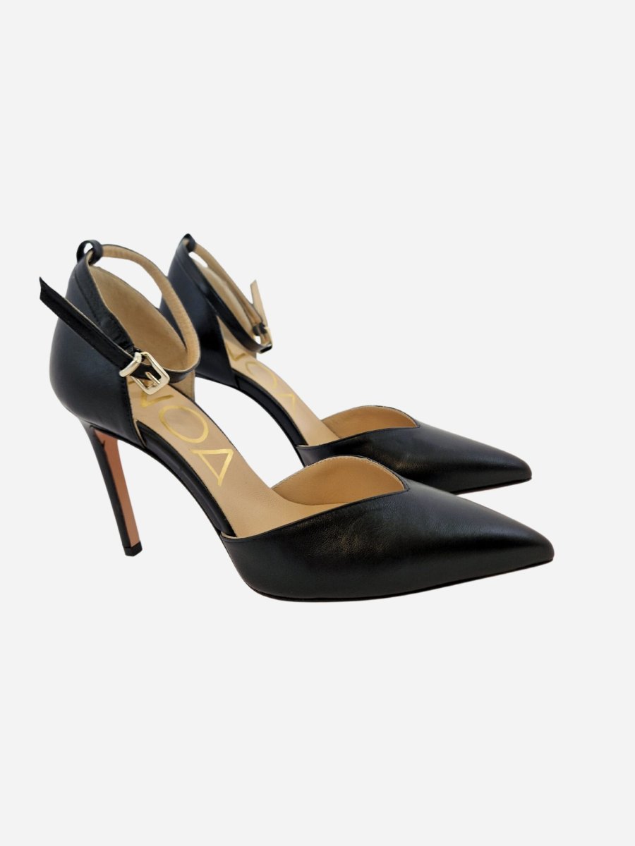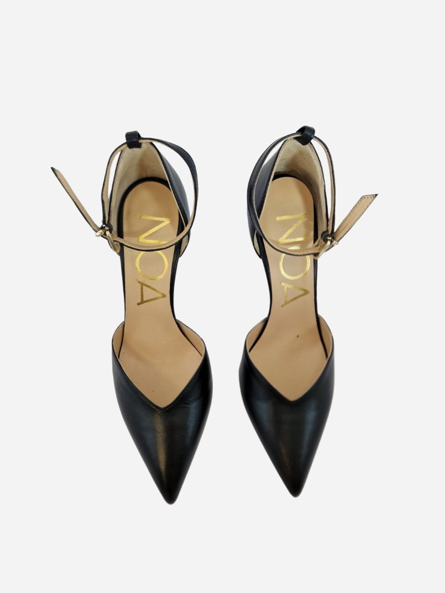 Scarpa con tacco e cinturino by Noa. Scarpe dalla linea classica e senza tempo, realizzate in vera pelle con fondo in cuoio. Tacco di 9 cm. Made in Italy