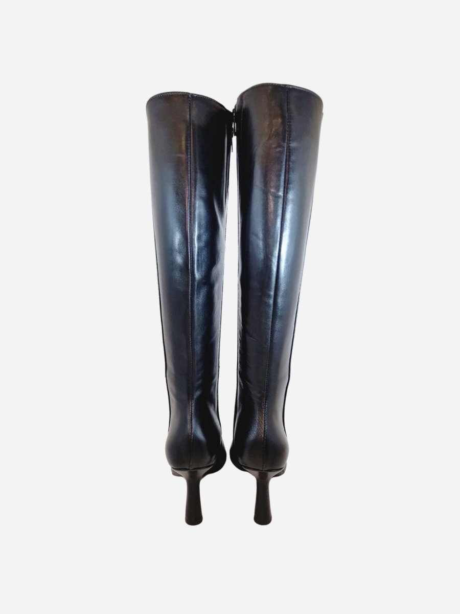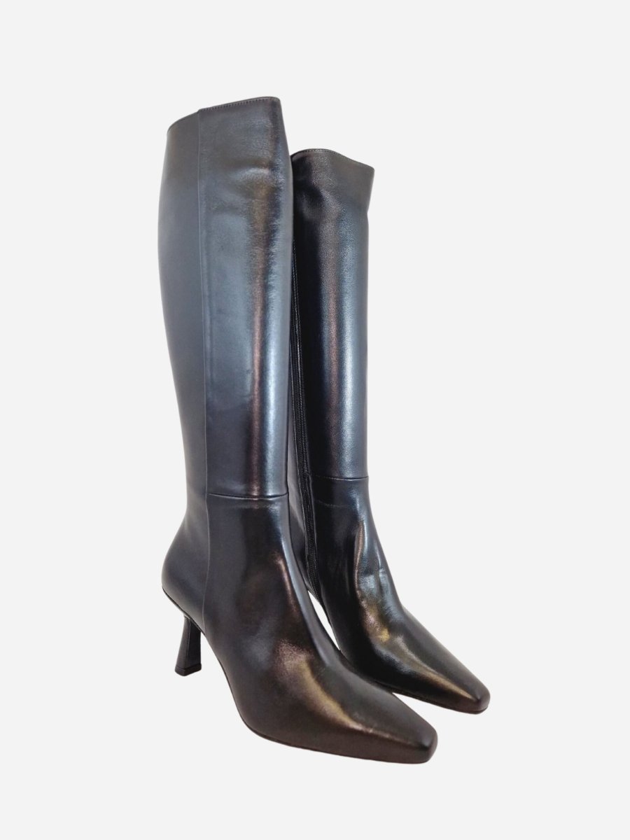 Stivali al ginocchio by Noa. Scarpe dalla linea classica, realizzate in vera pelle con fondo in cuoio e suola in materiale sintetico. Tacco a rocchetto di 7,5 cm. Chiusura con cerniera laterale interna. Le calzature firmate Noa sono interamente Made in Italy, caratterizzate da linee semplici, eleganti e femminili. Adatte a ogni look, donano un tocco chic alla quotidianitร .