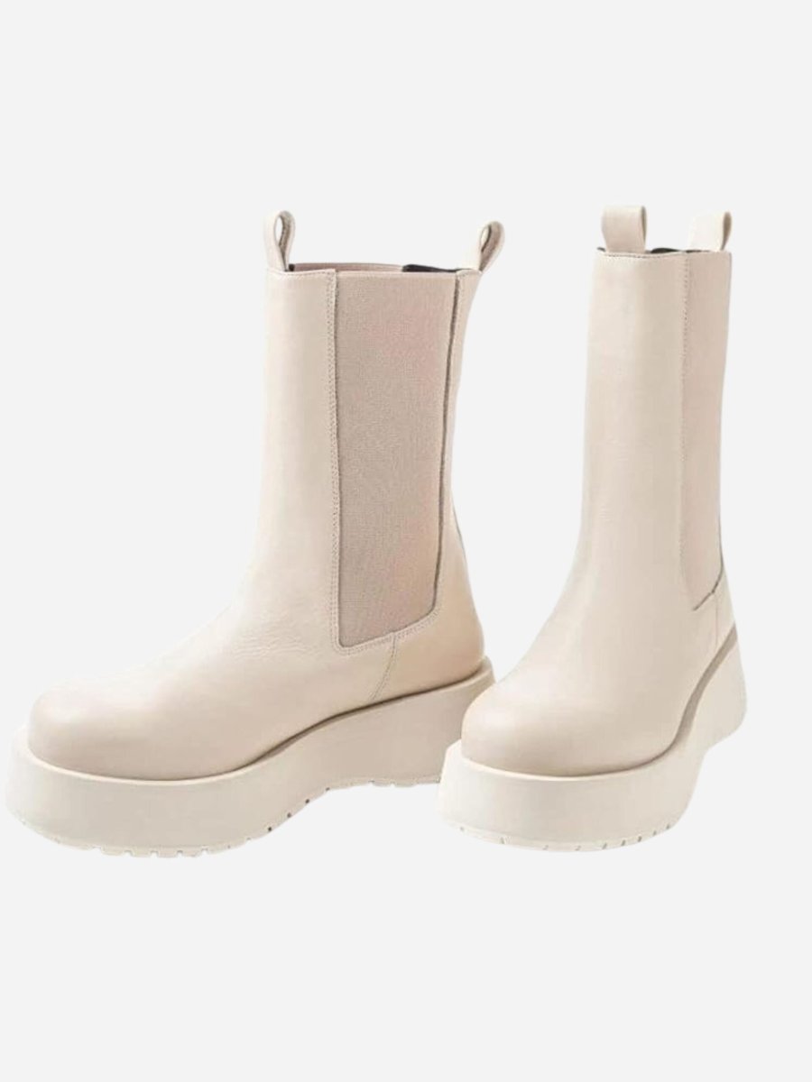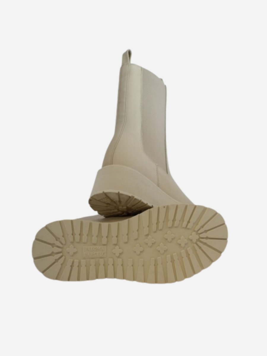 Beatles GALA by Paloma Barcelo’. Stivaletto in stile chunky realizzato in vera pelle con suola dentata in gomma antiscivolo. Bande elastiche laterali. Platform di 4 cm. Il marchio utilizza materiali naturali e di prima qualitร destinati a durare nel tempo. Caratterizzato da un design dale linee decise, Paloma Barcelo’ punta tutto sull’espressione di una personalitร forte, inequivocabile e consapevole della tradizione.