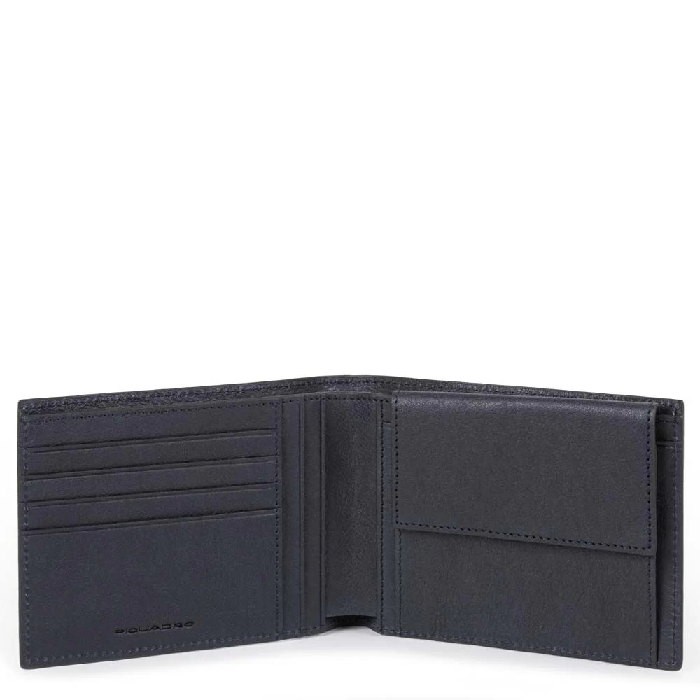 PORTAFOGLIO DA UOMO PIQUADRO IN VERA PELLE 5 PORTA CARTE 2 TASCHINI MULTIUSO PORTA MONETE DIMENSIONI: 12,50 x 9,00 x 2,00 cm