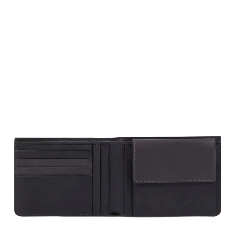 PORTAFOGLIO DA UOMO PIQUADRO IN VERA PELLE 5 PORTA CARTE 2 TASCHINI MULTIUSO PORTA MONETE DIMENSIONI: 12,50 x 9,00 x 2,00 cm
