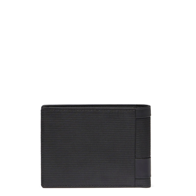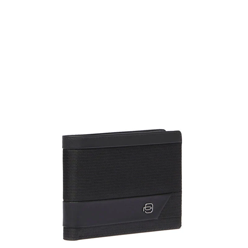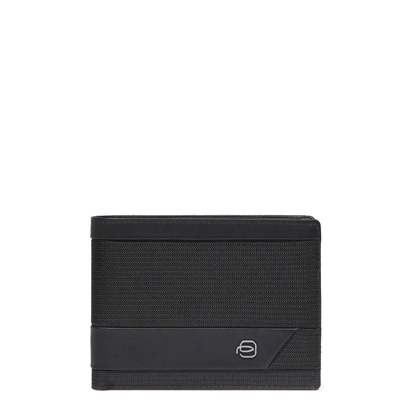PORTAFOGLIO DA UOMO PIQUADRO MATERIALE: PELLE E TESSUTO 5 PORTA CARTE 2 TASCHINI MULTIUSO PORTA MONETE DIMENSIONI: 12,50 x 9,00 x 2,00 cm