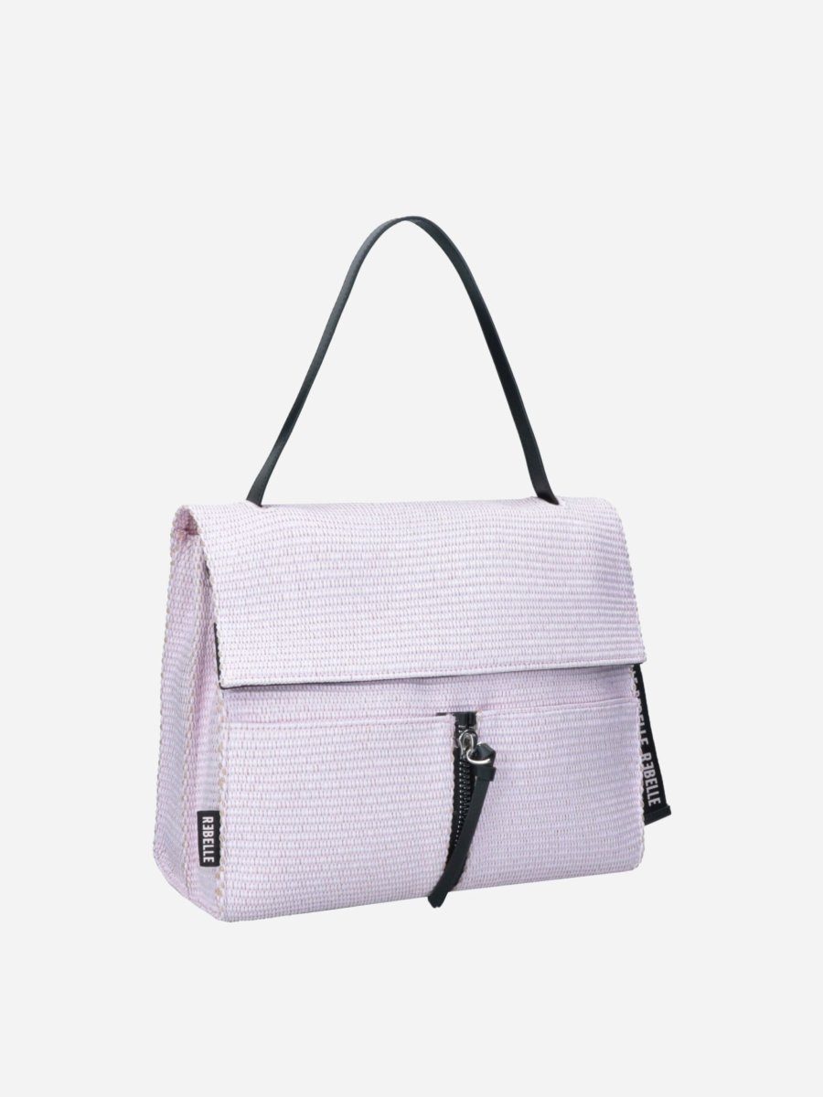 Borsa a cartella COACHELLA by Rebelle. Borsa realizzata in tessuto forato, comoda e capiente. L’interno è foderato e diviso in due scomparti da una tasca con zip. Può essere portata a spalla o crossbody grazie alla tracollina staccabile e regolabile. Nella parte davanti sono presenti due tasche e un charms portachiavi con logo.