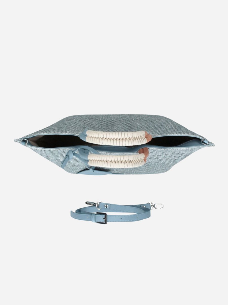 Borsa shopping FILIPPA GIZA by Rebelle. Borsa realizzata in raphia, comoda e capiente. Può essere portata a spalla o crossbody grazie alla tracollina staccabile e regolabile.