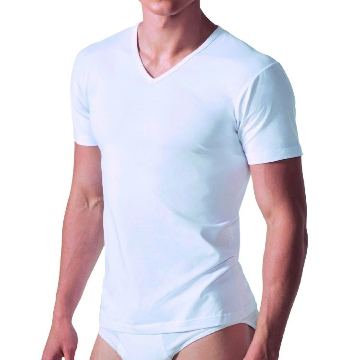 Maglia uomo Rossoporpora, in cotone bielastico, scollo v in tinta unita. Composizione: 90% cotone, 10% elastan. Confezione da 3 pezzi. Disponibile nei colori Bianco, Blu e Nero nelle taglie 3 – 4 – 5 – 6.