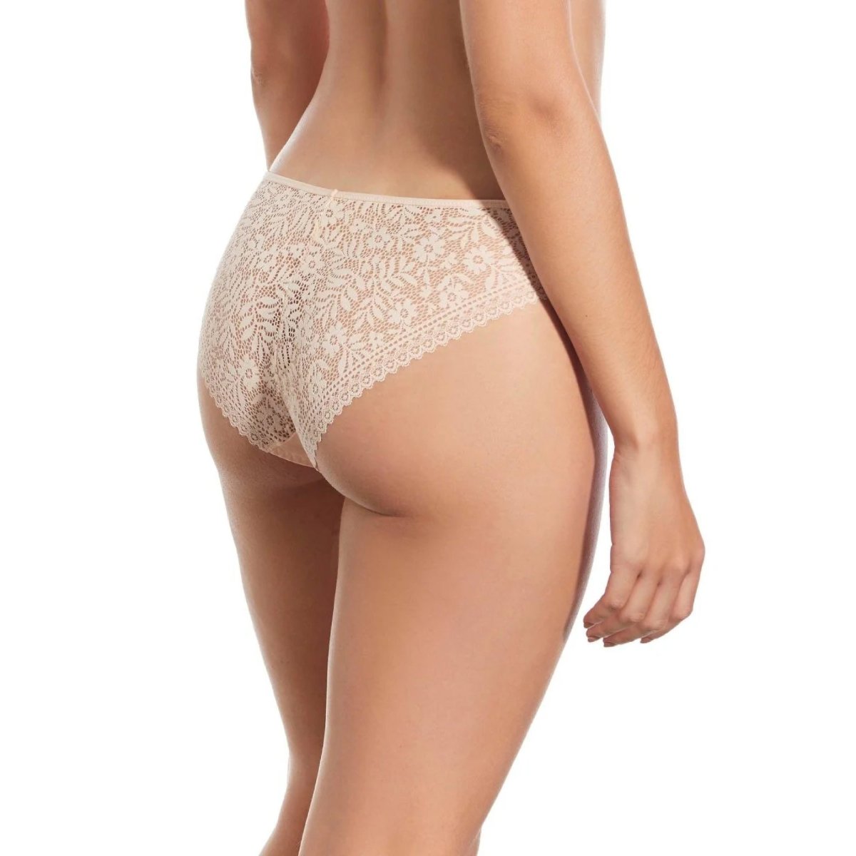 Slip donna Selene, a vita bassa in raffinatissimo pizzo e tulle sul davanti e pizzo sul retro. Composizione: 87% poliammide 13% elastan. Confezione da 1 pezzo. Disponibile nei colori Marfil, Nero e Tierra nelle taglie S โ M โ L – XL.