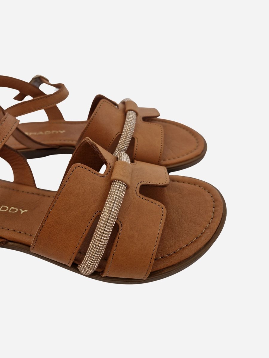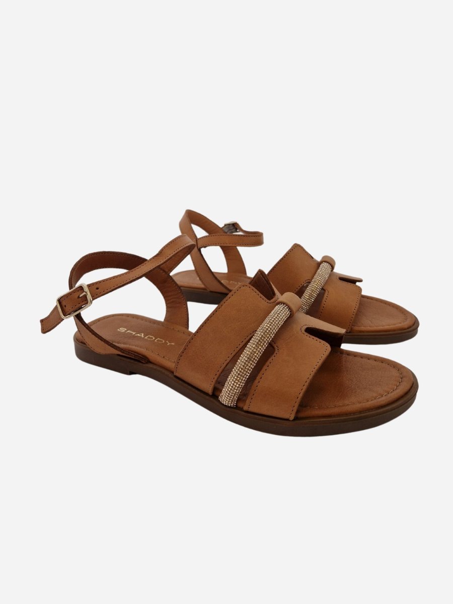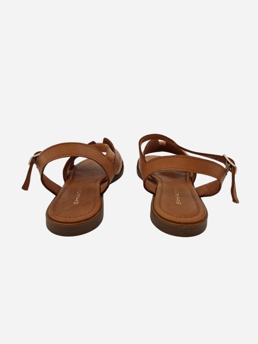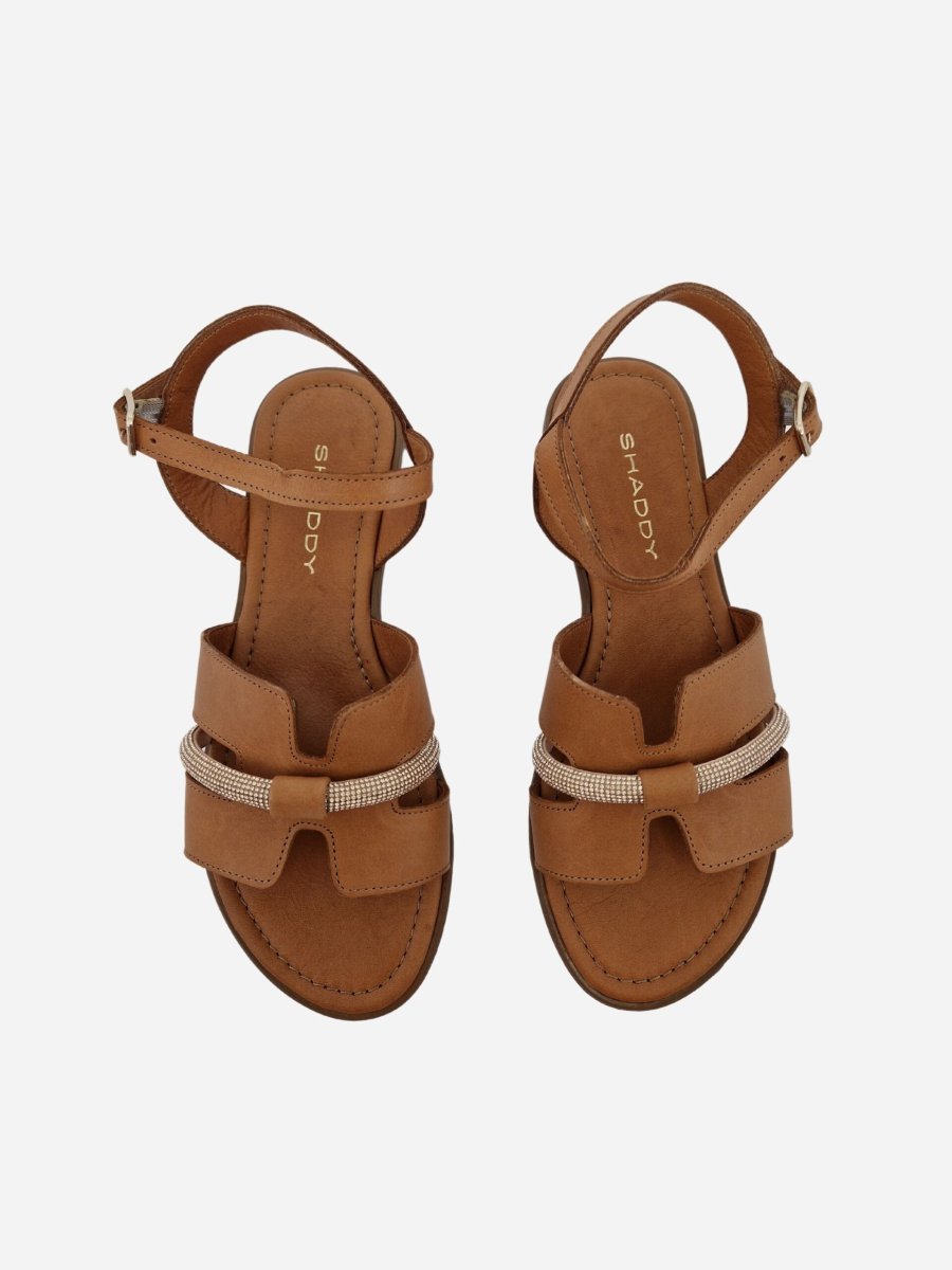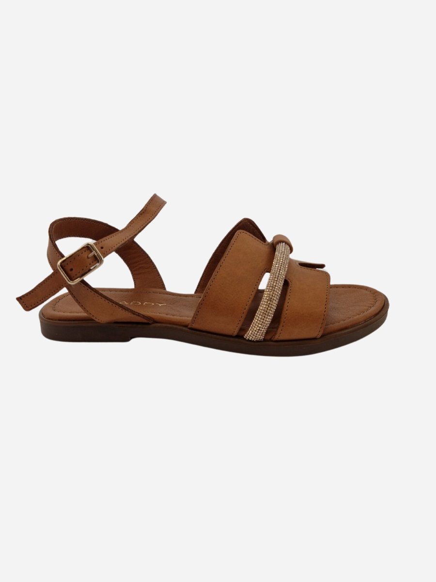 Sandalo by Shaddy. Calzature realizzate in vera pelle con morbido fondo in cuoio e suola in materiale sintetico arricchite da una fascetta di strass. Chiusura con cinturino.