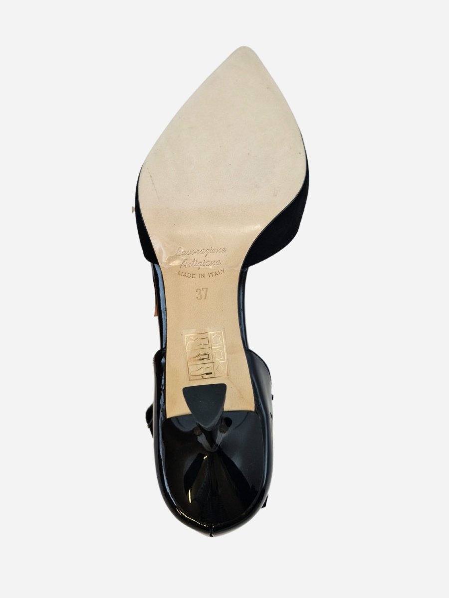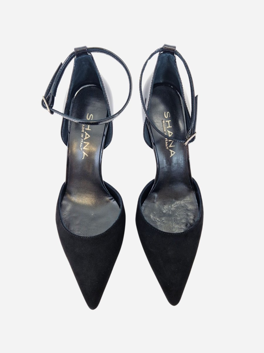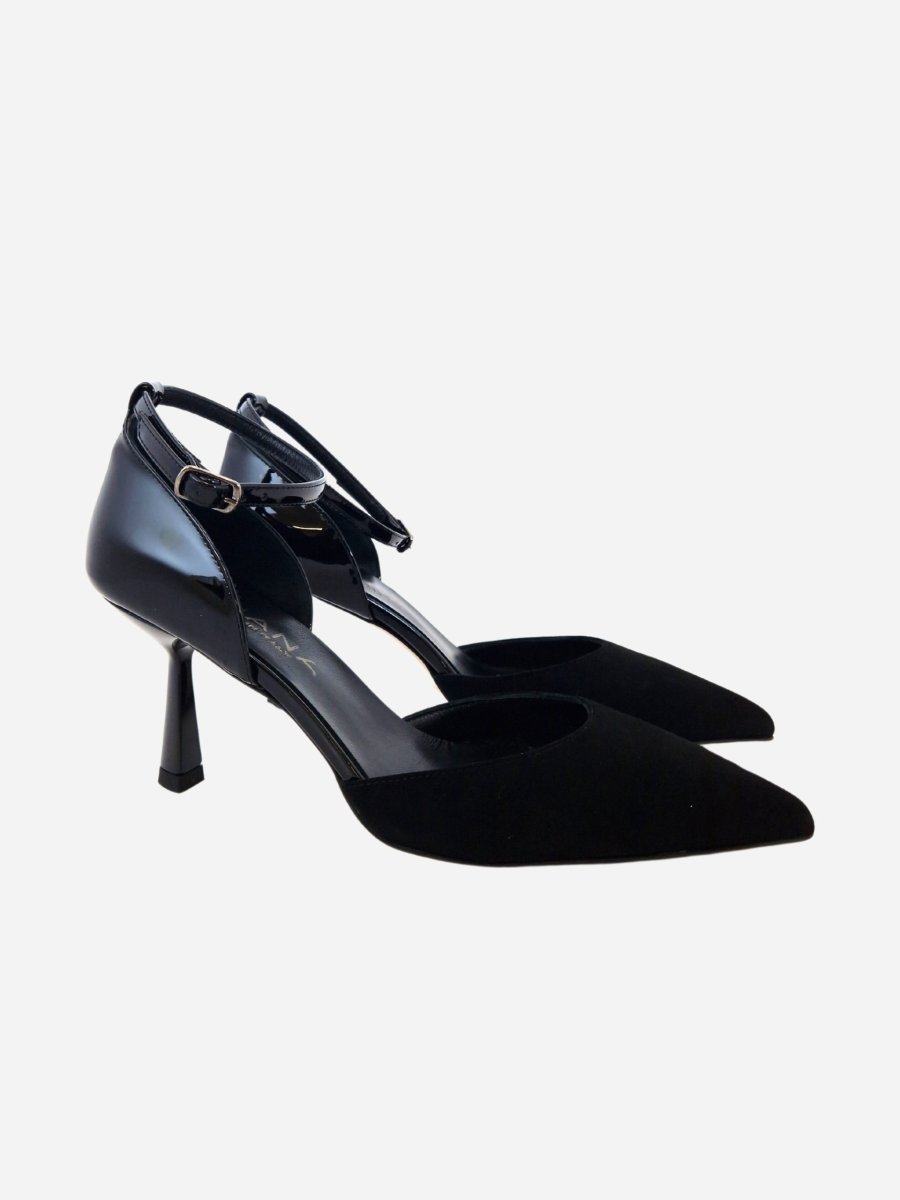Scarpa con cinturino TED 340. Calzature realizzate in vera pelle verniciata sul retro e camoscio sulla punta, con interno in pelle e suola in materiale sintetico. Chiusura con cinturino alla caviglia. Tacco di 7 cm. Made in Italy