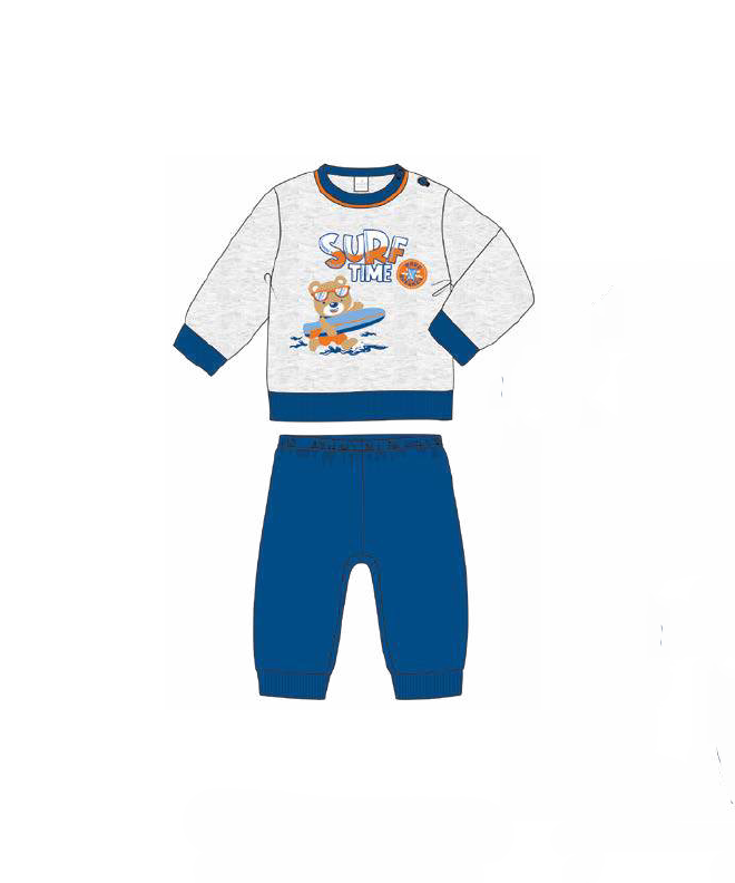 Pigiama baby Sognosondesto primavera/estate con fantasia, maglia manica lunga girocollo, apertura sulla spalla, pantalone lungo in tinta unita con polsini alle caviglie. Composizione: 100% cotone. Confezione da 1 pezzo. Disponibile nei colori Blu e Grigio nelle taglie 9 mesi โ 12 mesi โ 18 mesi โ 24 mesi – 30mesi.