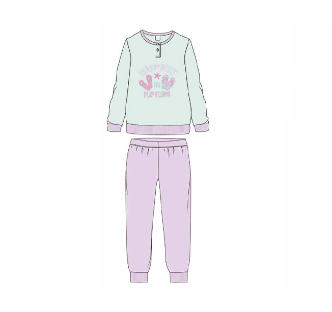 Pigiama bimba Sognosondesto primavera/estate con fantasia, maglia manica lunga girocollo con bottoncini, pantalone lungo in tinta unita con polsini alle caviglie. Composizione: 100% cotone. Confezione da 1 pezzo. Disponibile nei colori Verde e Rosa nelle taglie 3 โ 4 โ 5 โ 6 โ 7 โ 8 โ 9 โ 10 anni.