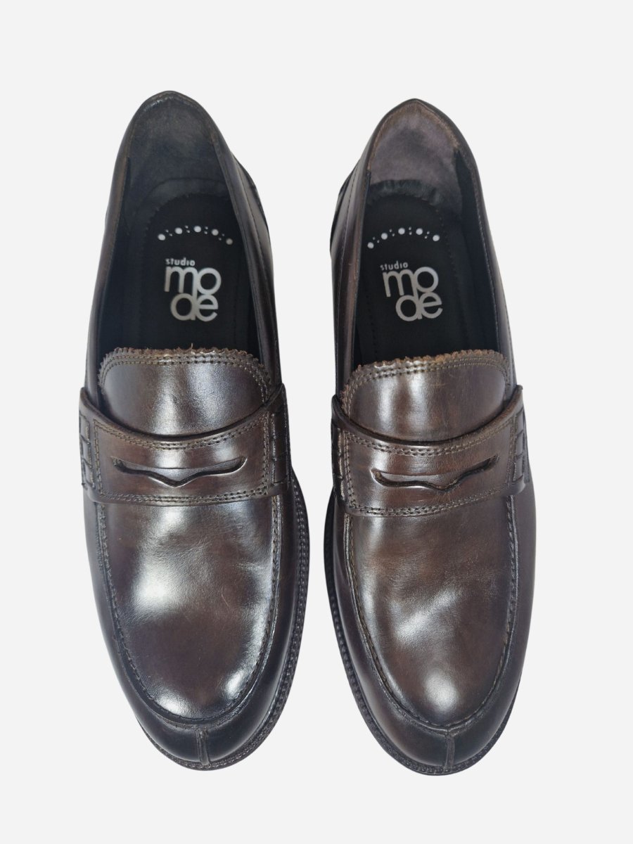 Mocassini by Studio Mode. Calzature dalla linea classica, realizzate in vera pelle con suola in materiale sintetico. Disponibile in due varianti: nero, testa di moro.
