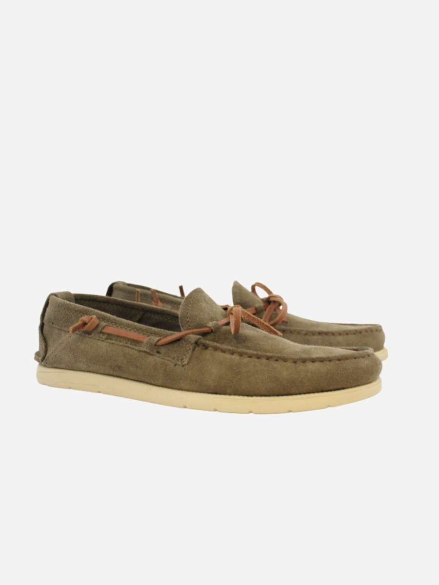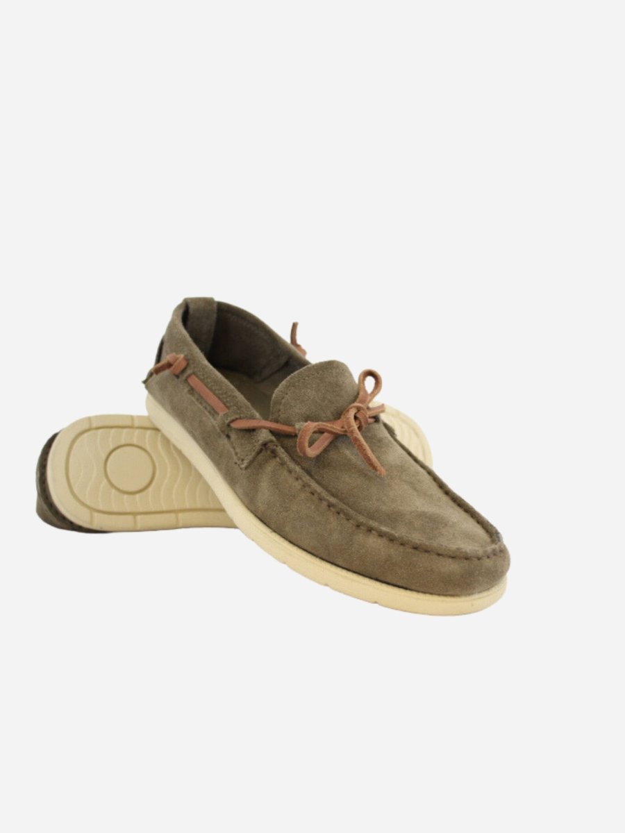 Mocassino by Studio Mode nella variante beige. Scarpe in stile boat, realizzate in pelle scamosciata con cordino a contrasto color cuoio. Suola in gomma. Le calzature di Studio Mode sono interamente Made in Italy, realizzate con materiali di prima qualitร per garantire la comoditร nella vita quotidiana.