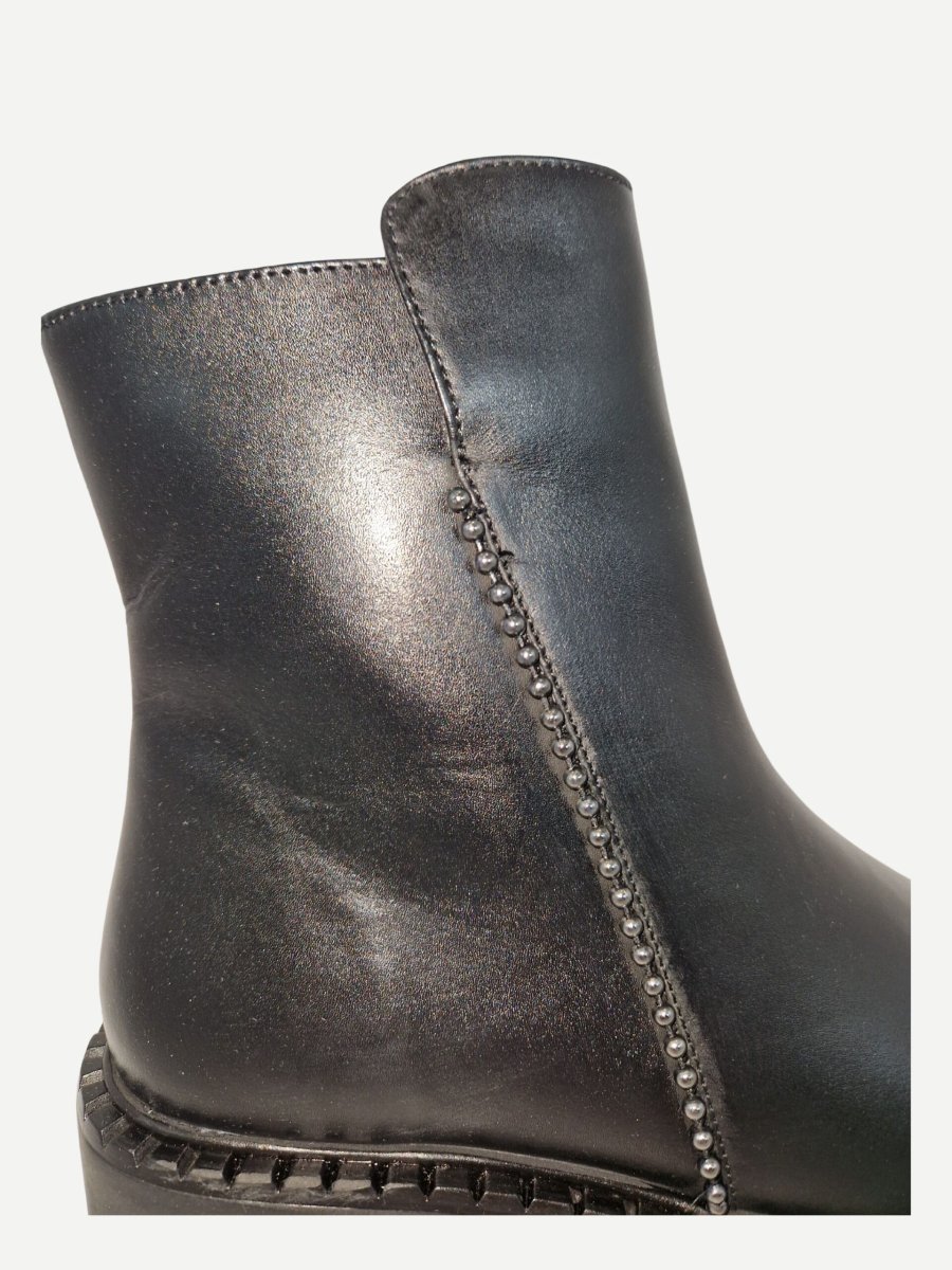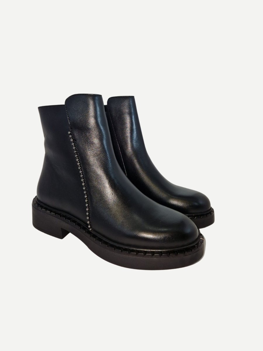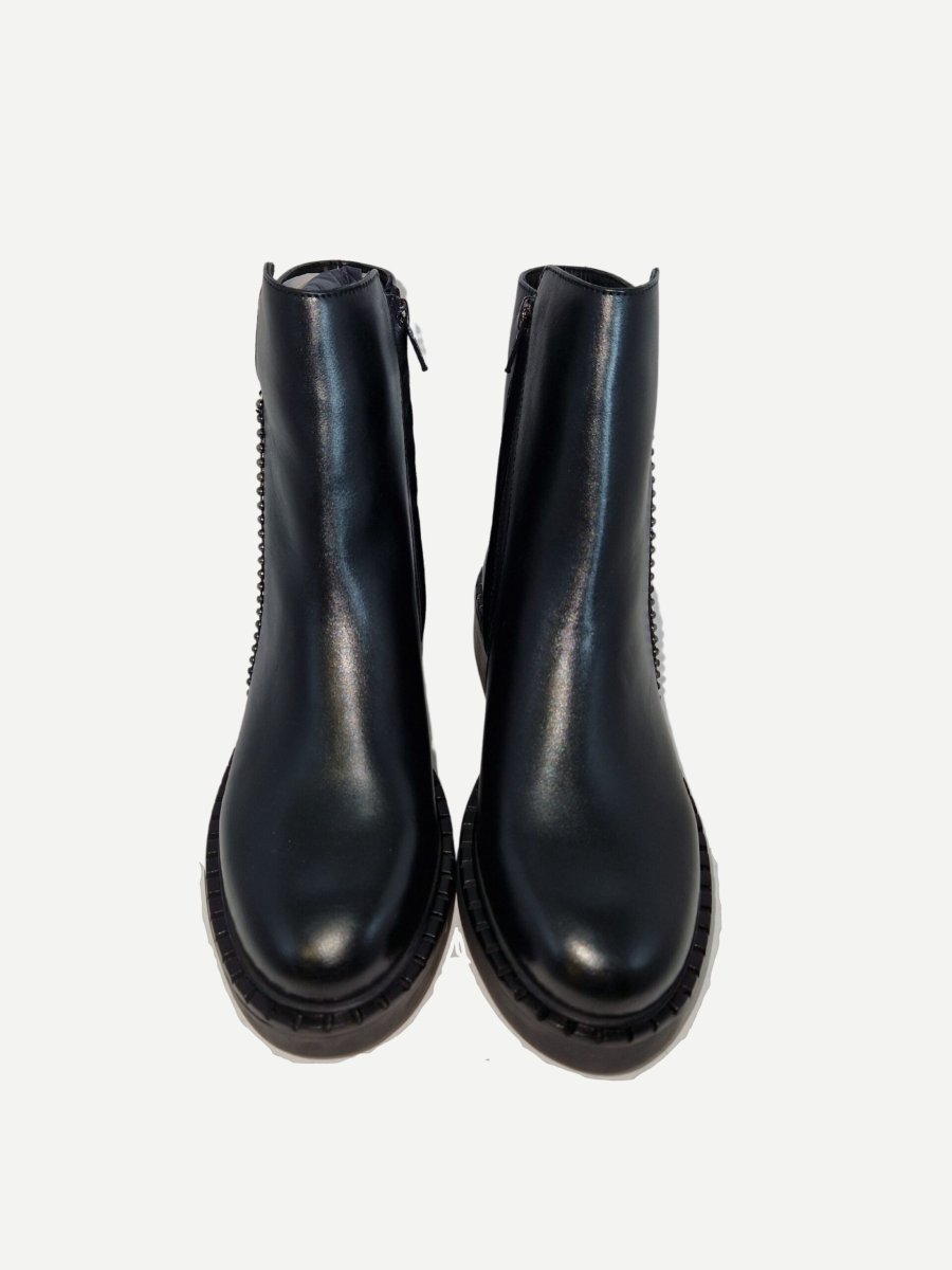 Scarponcino stile beatles 912 by Studio Mode. Scarpe realizzate in vera pelle con perline argentate lungo il lato. Suola in gomma. Chiusura con cerniera laterale.