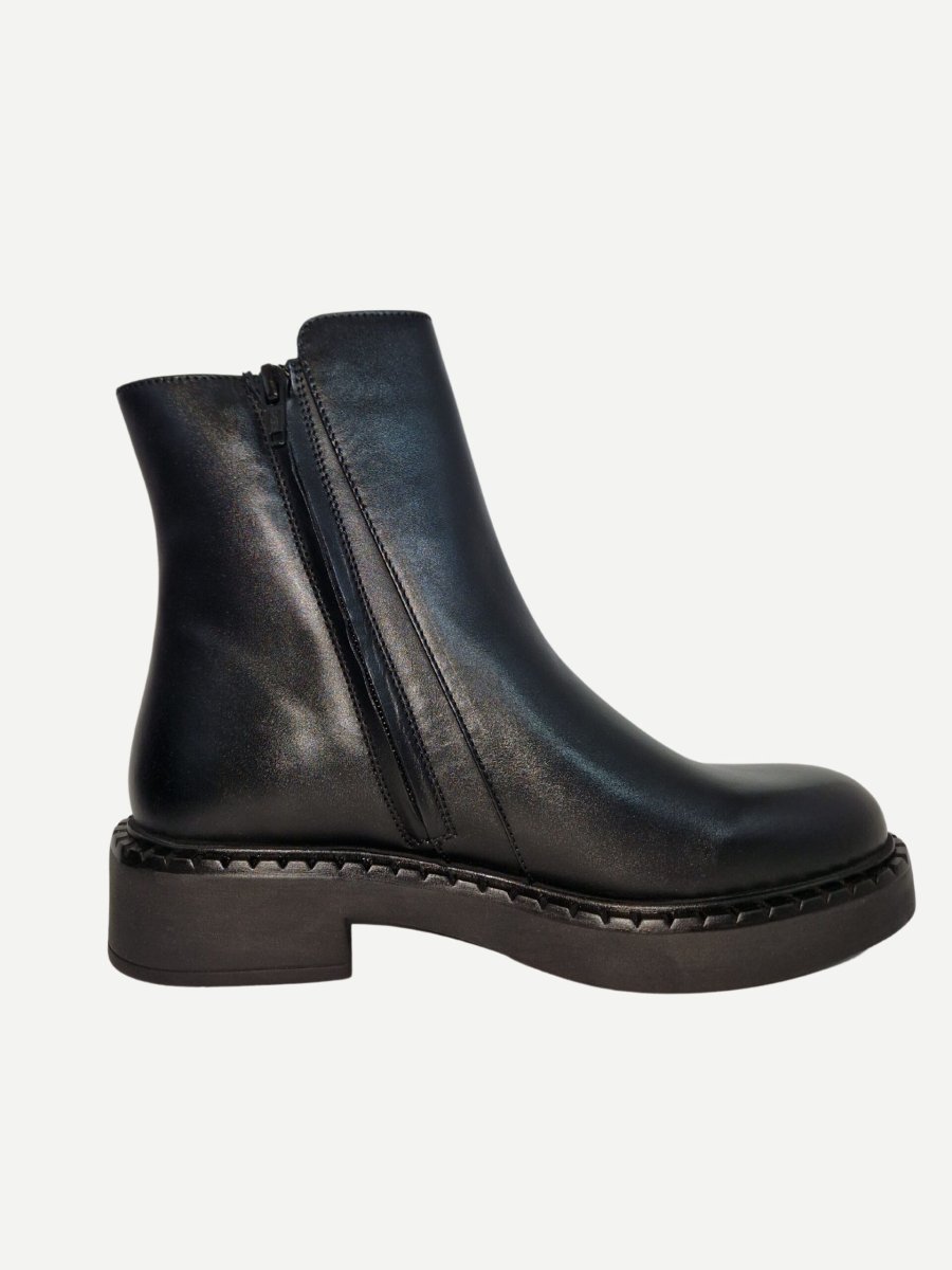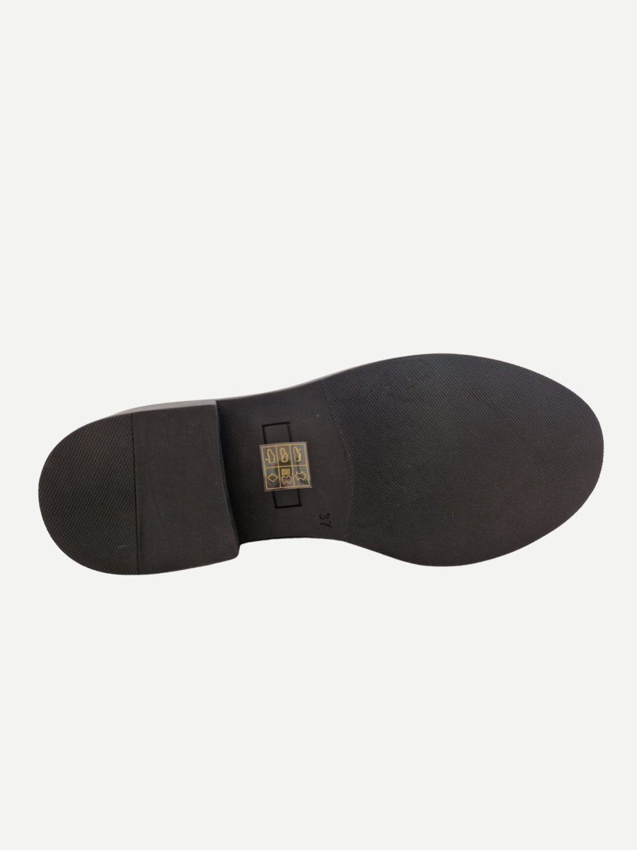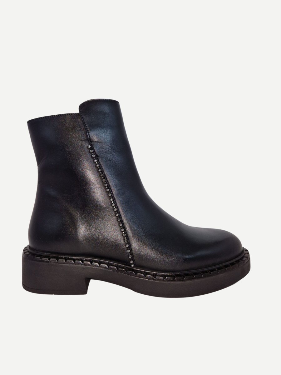 Scarponcino stile beatles 912 by Studio Mode. Scarpe realizzate in vera pelle con perline argentate lungo il lato. Suola in gomma. Chiusura con cerniera laterale.