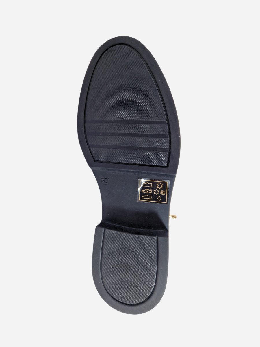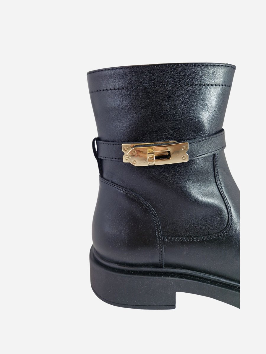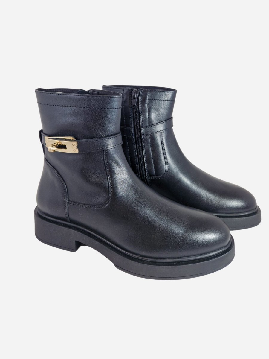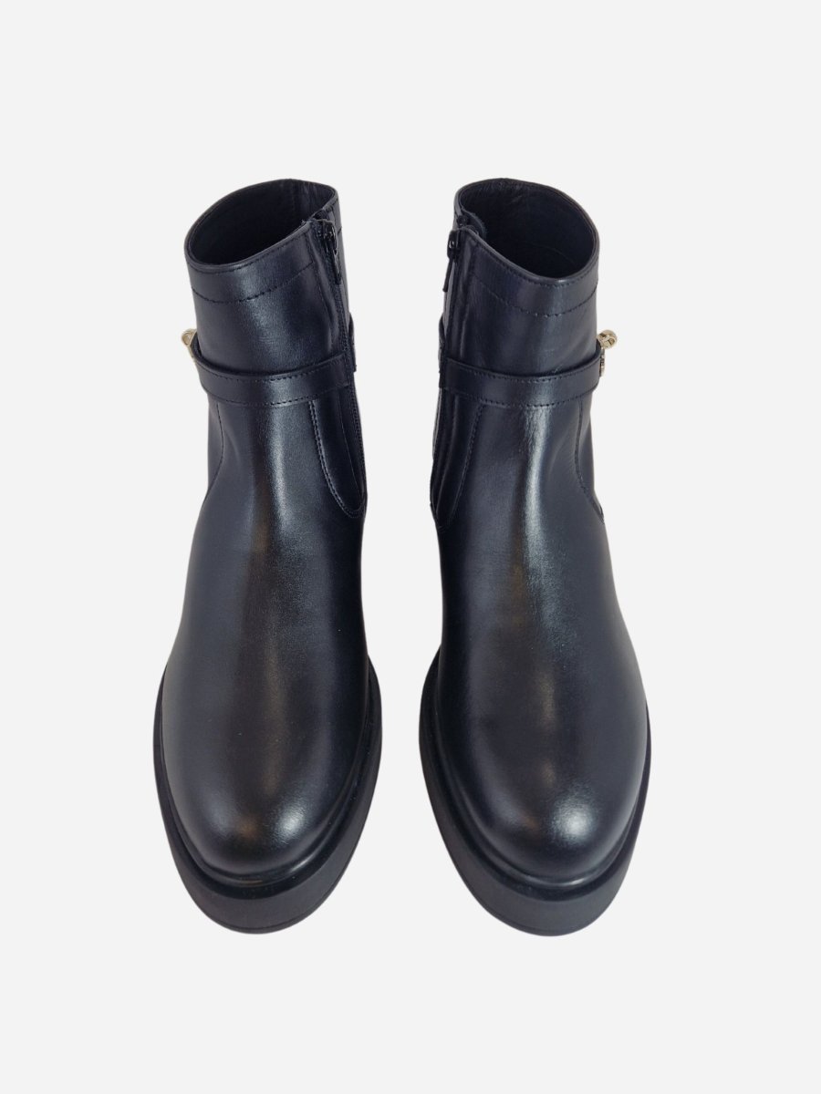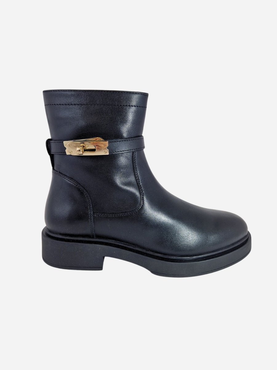 Scarponcino by Studio Mode. Calzature dalla linea classica arricchite da un lucchetto accessorio, realizzate in vera pelle con suola in materiale sintetico. Chiusura con cerniera laterale.