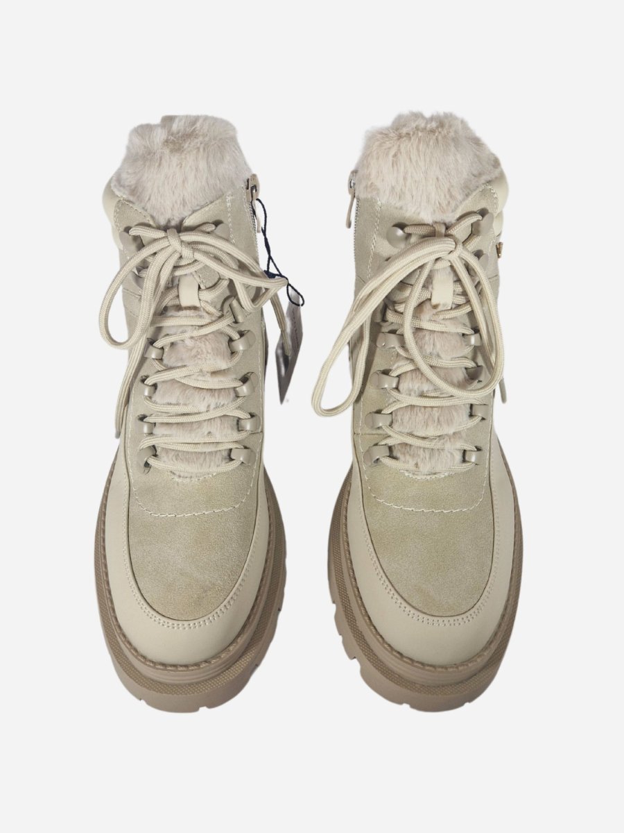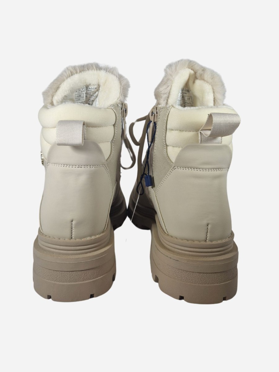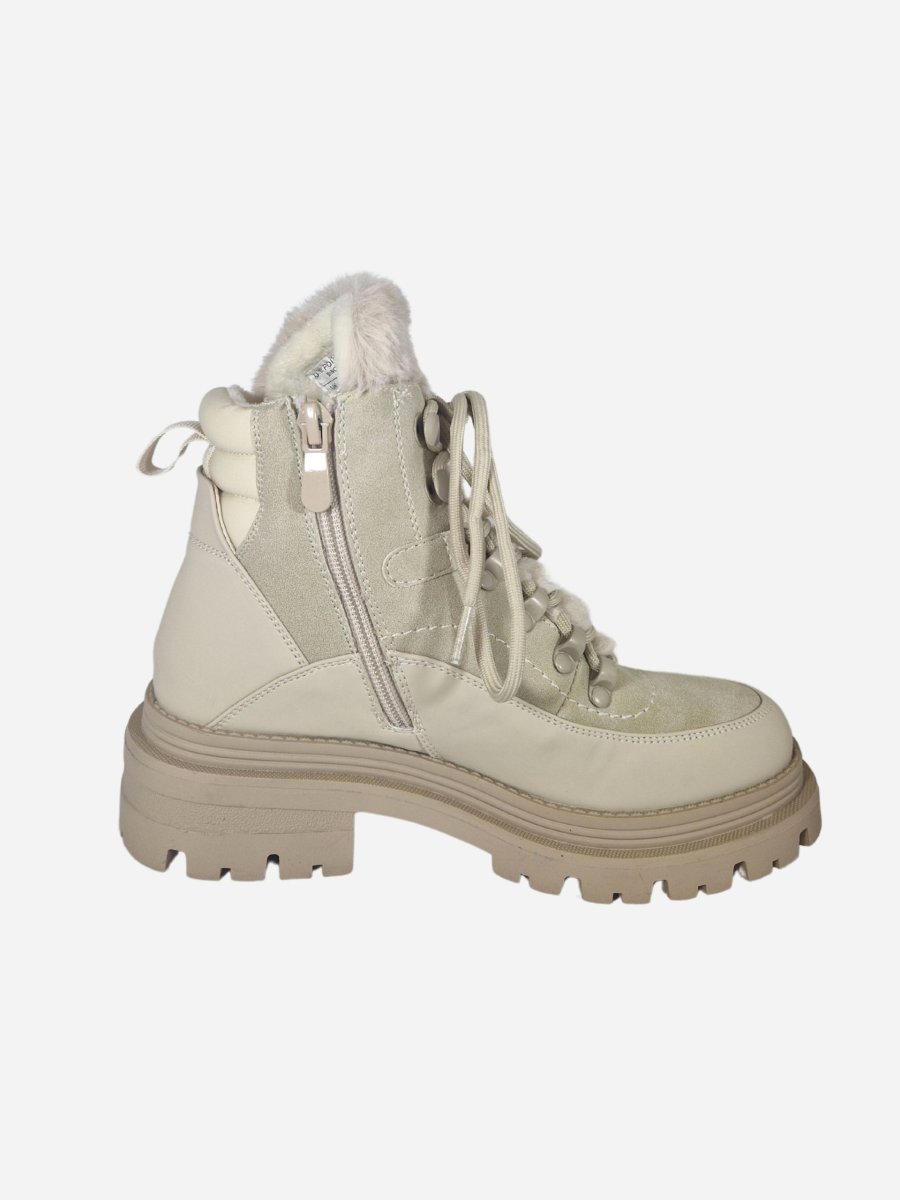Scarponcino ALICYA001 by U.S. POLO ASSN. Scarpe realizzate in similpelle e suede, con toppone in tessuto imbottito. Linguetta ed interno in morbido pelo. Suola in gomma. Logo dorato applicato lateralmente a contrasto. Chiusura con lacci e cerniera laterale.