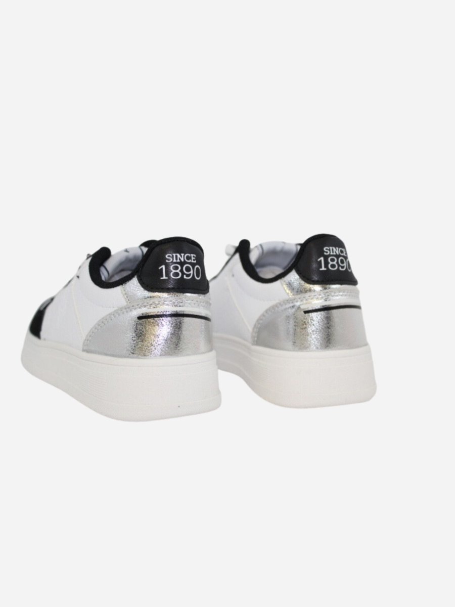 Sneakers KOSMO by U.S. Polo Assn. nella variante bianco/nero. Scarpe realizzate in similpelle con dettagli a contrasto. Suola in materiale sintetico di prima qualitร .