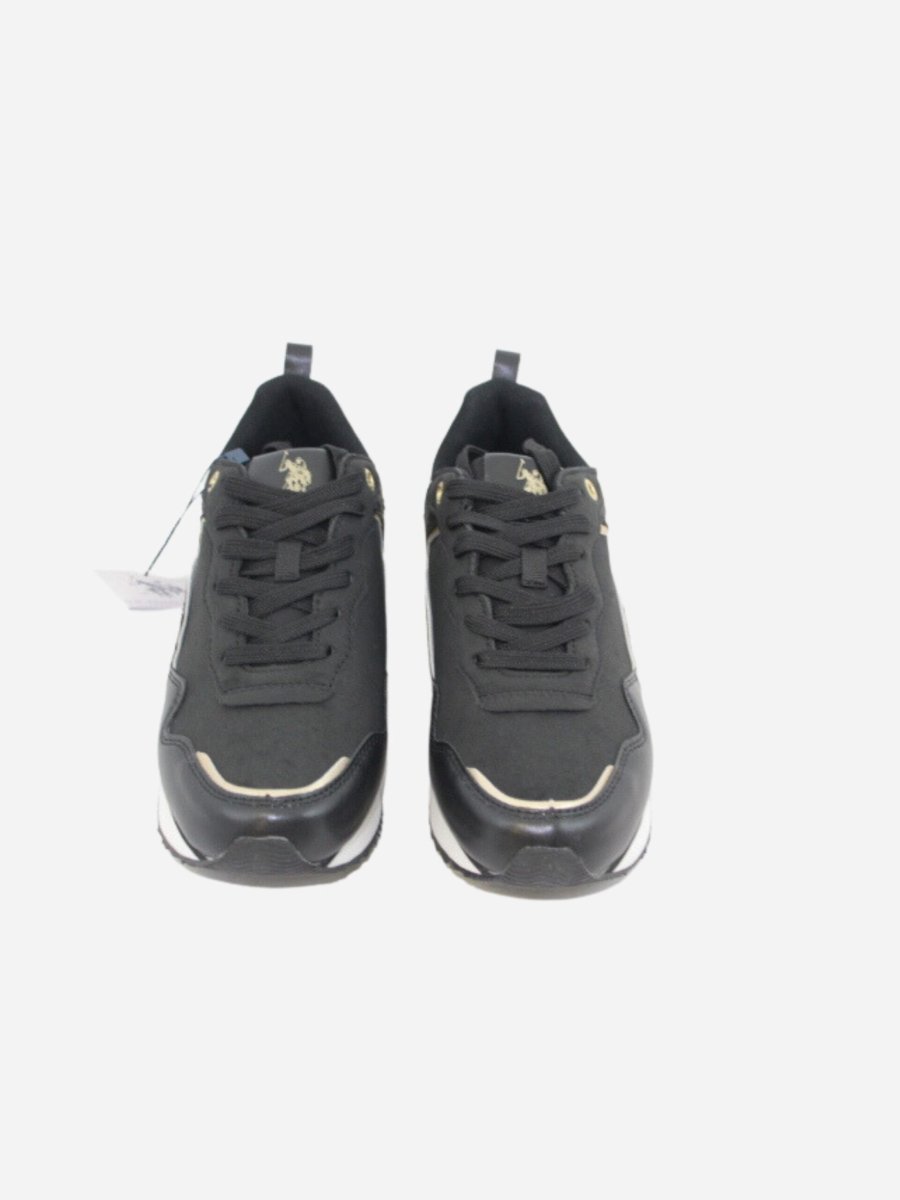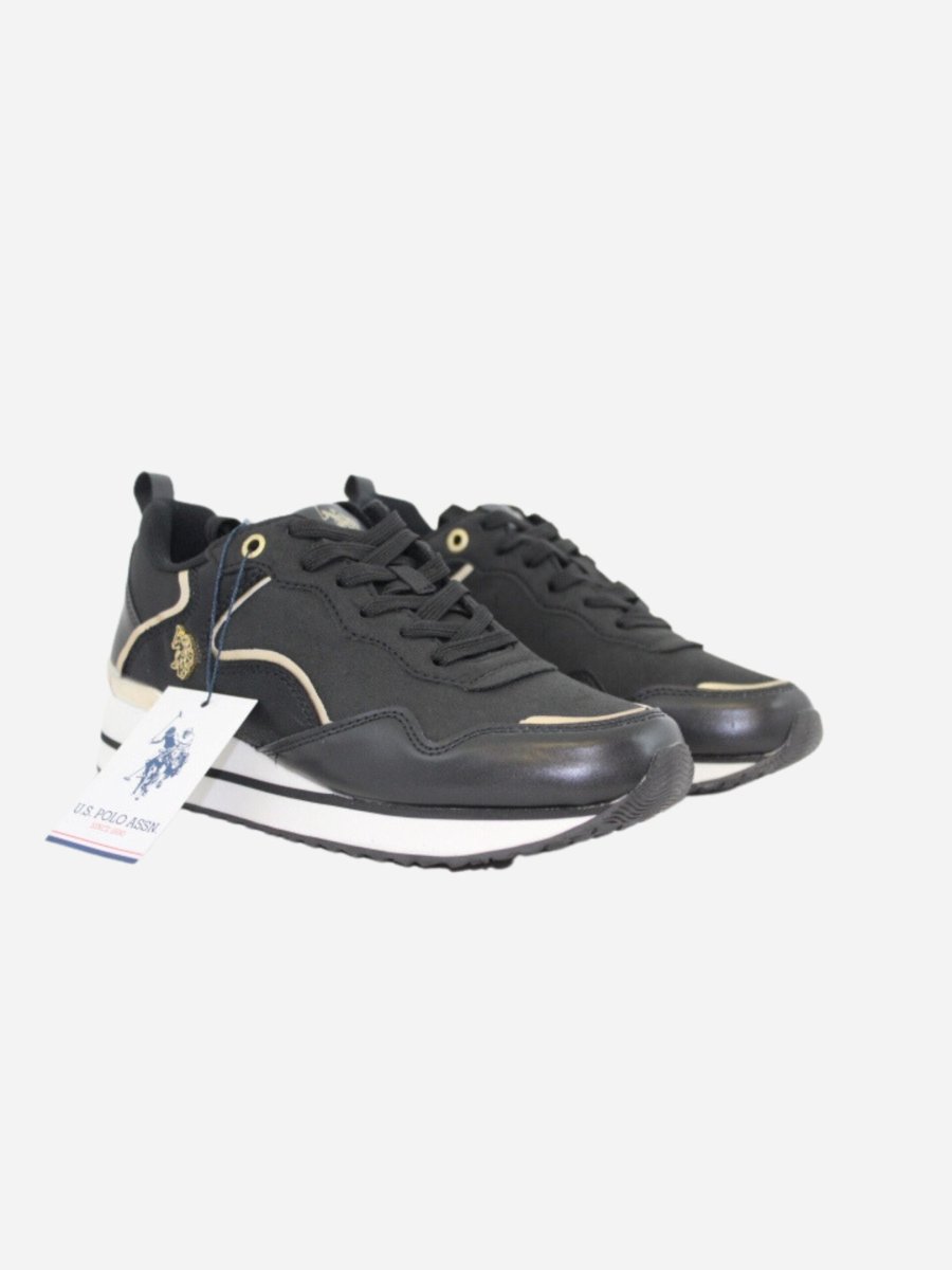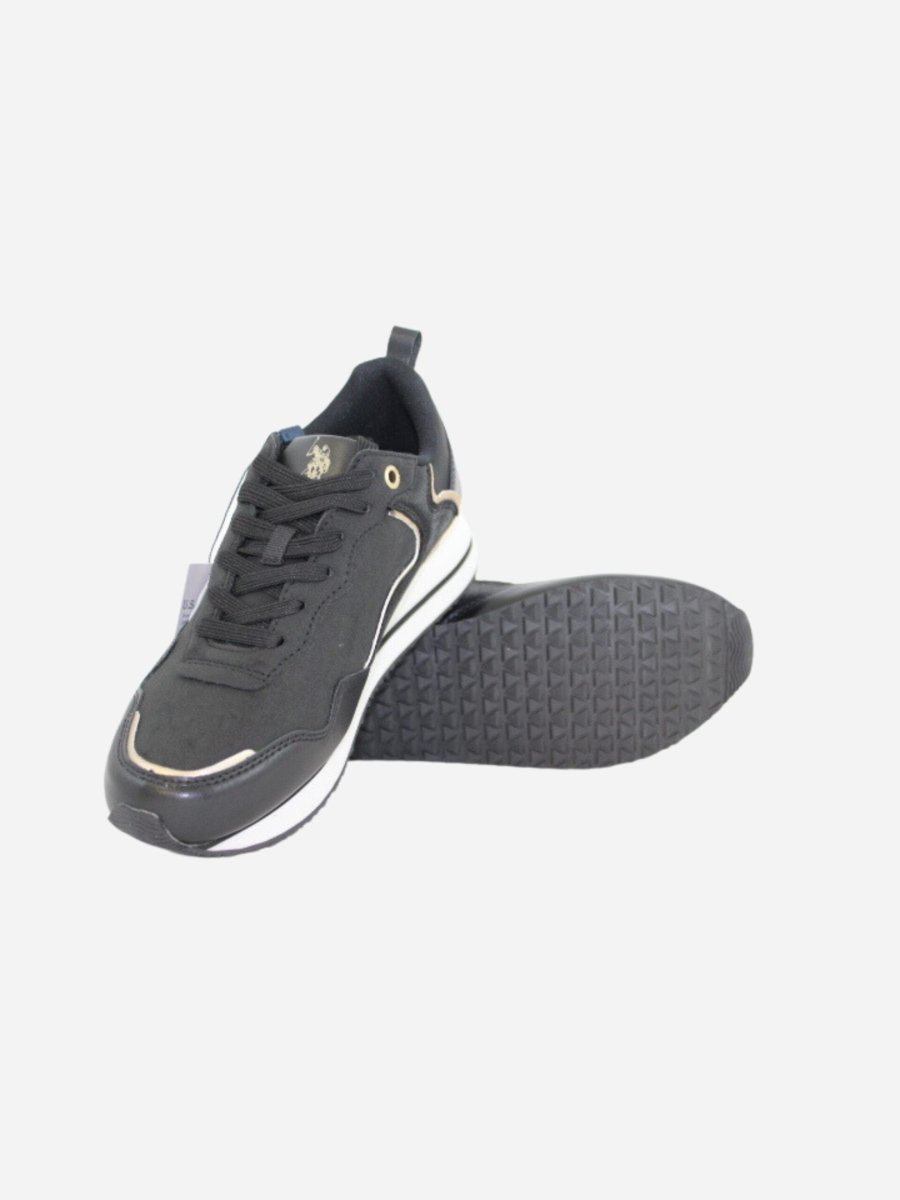 Sneakers LAYLA BY U.S. Polo Assn. nella variante nera. Scarpe realizzate in ecopelle scamosciata e nylon. Suola in materiale sintetico di prima qualitร . Dettagli oro a contrasto.