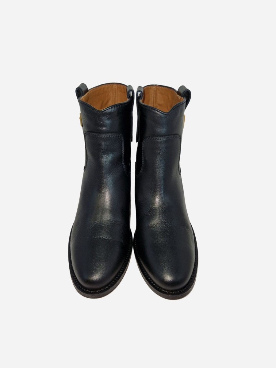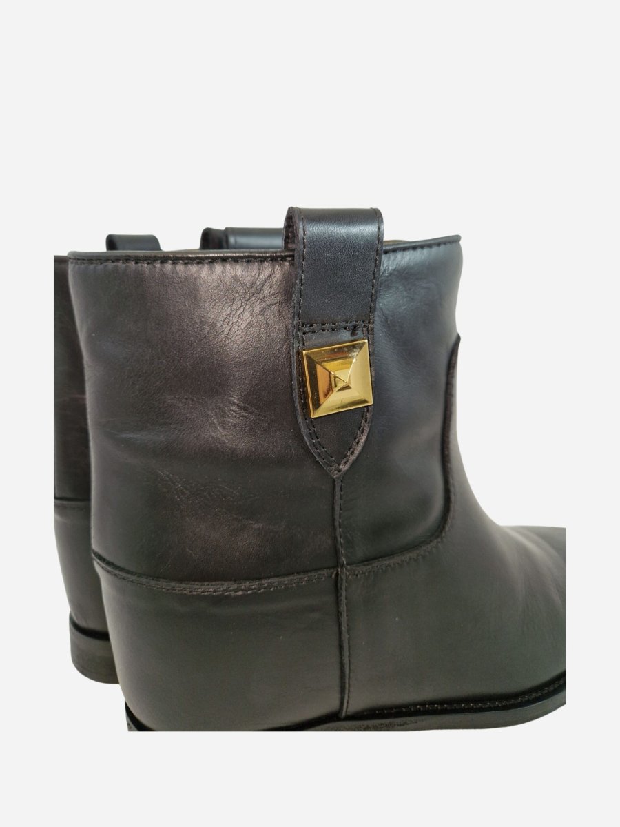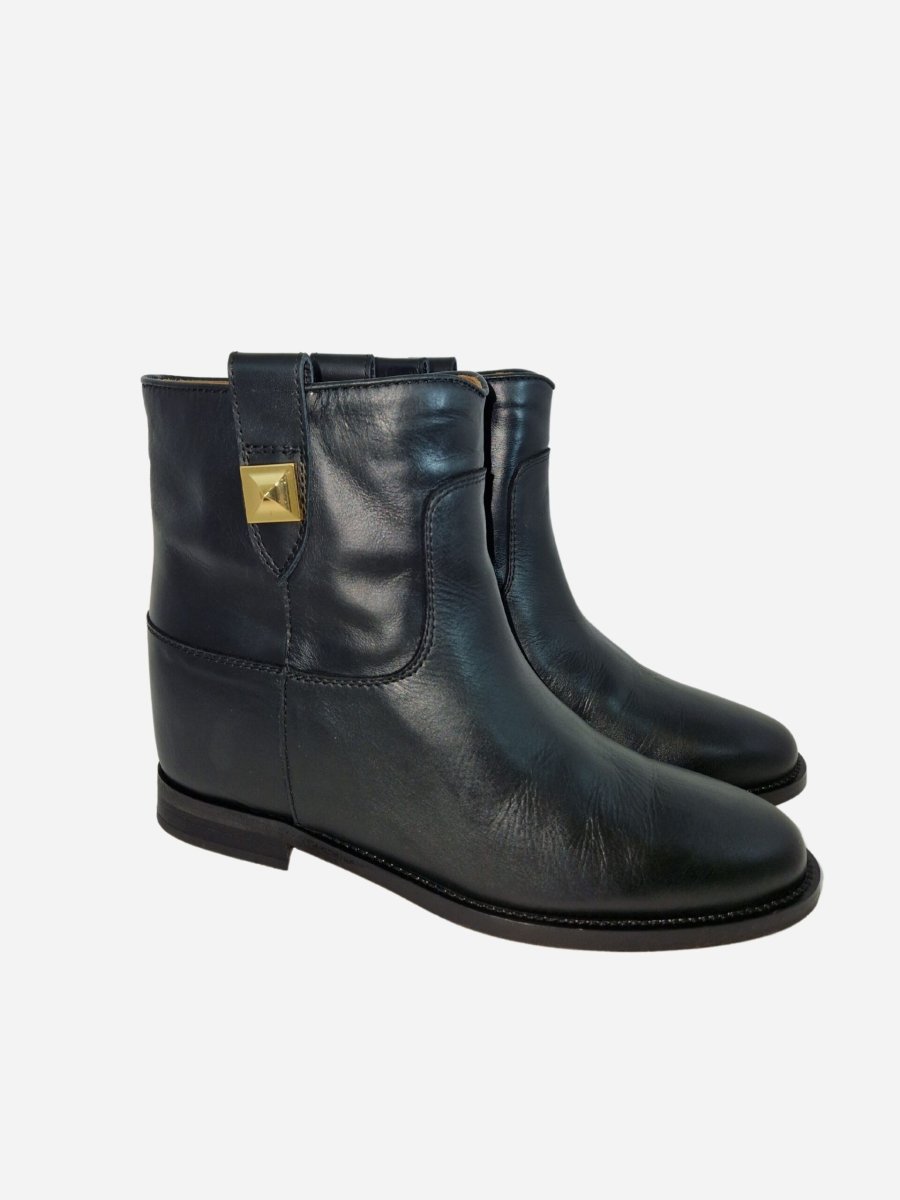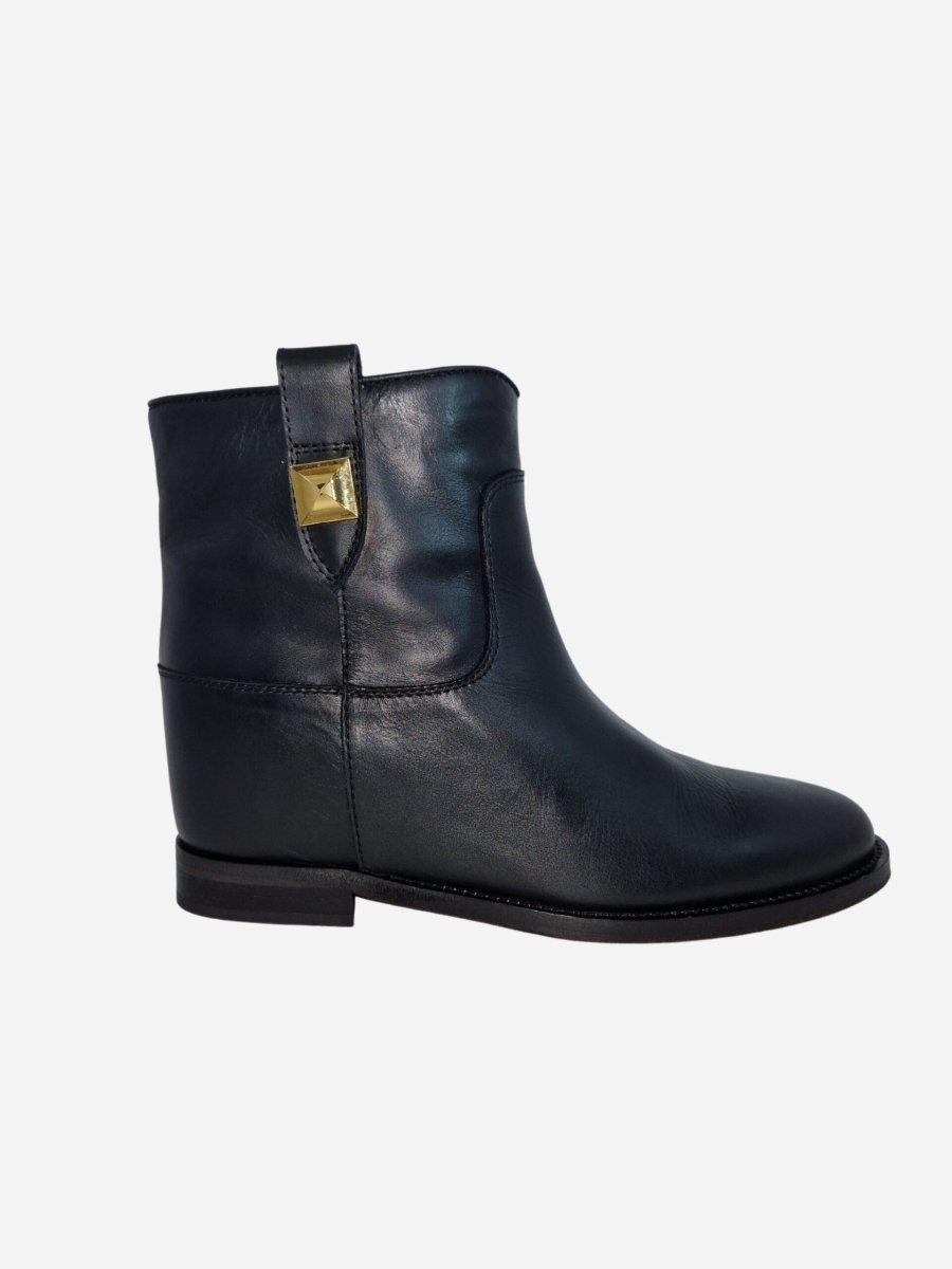 Tronchetto by Via Roma 15. Stivali realizzati in vera pelle con zeppa interna di 5 cm. Dettaglio borchia dorata nella parte superiore. Nella confezione รจ presente la dustbag. Made in Italy