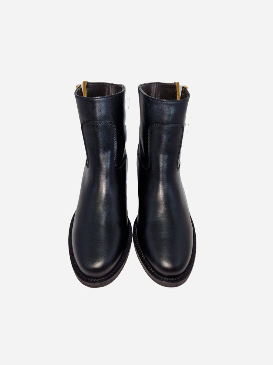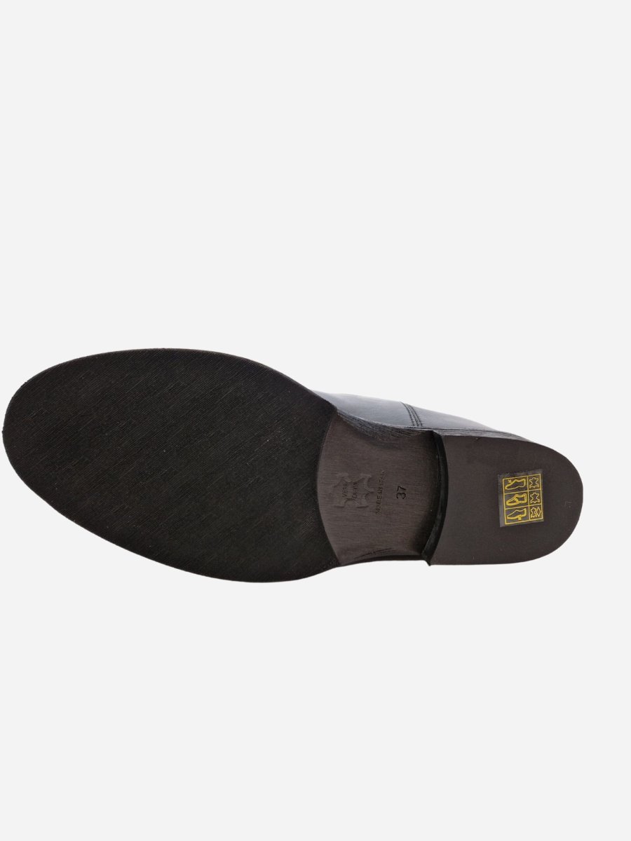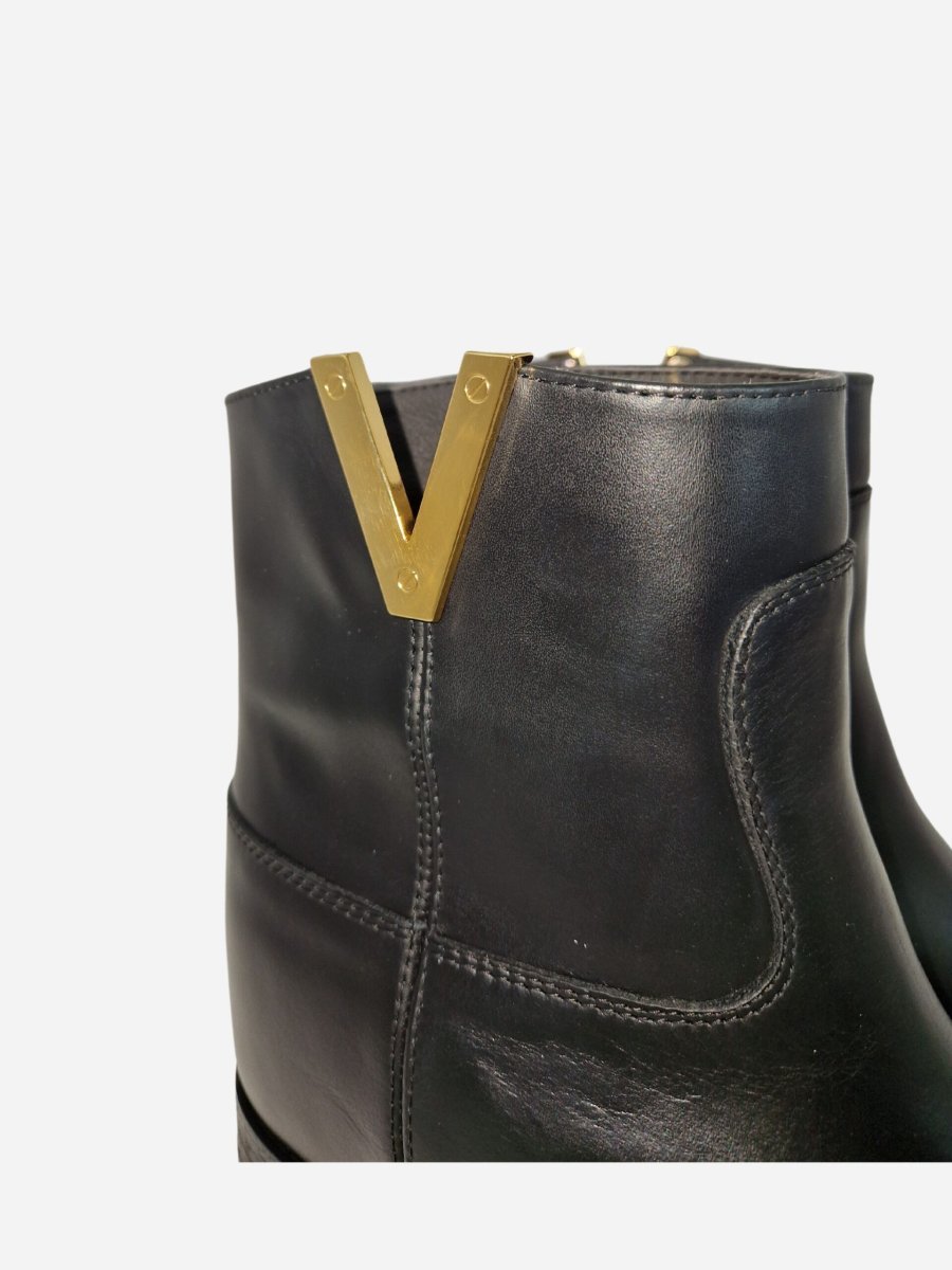Tronchetto by Via Roma 15 nella variante nera. Stivali realizzati in vera pelle con zeppa interna di 5 cm. Dettaglio V dorata liscia nella parte superiore. Nella confezione รจ presente la dustbag. Made in Italy