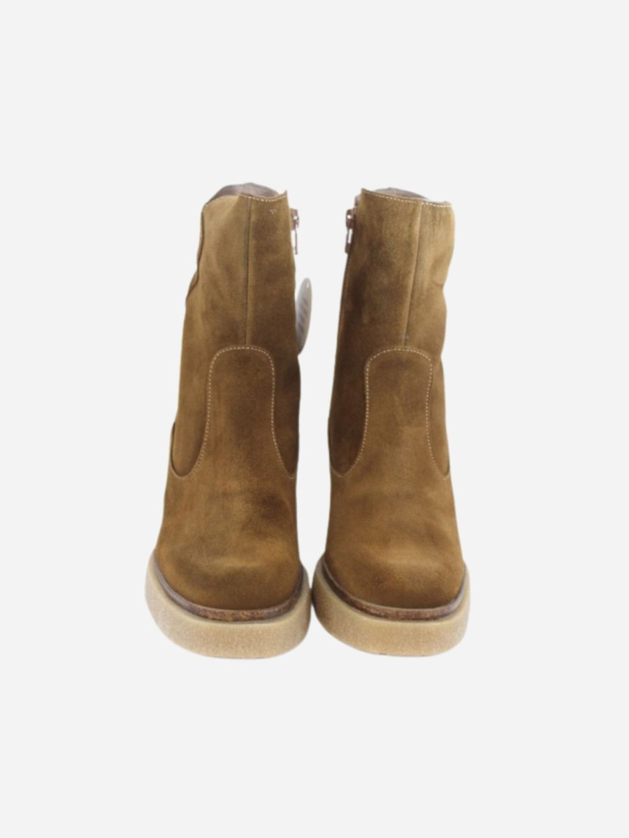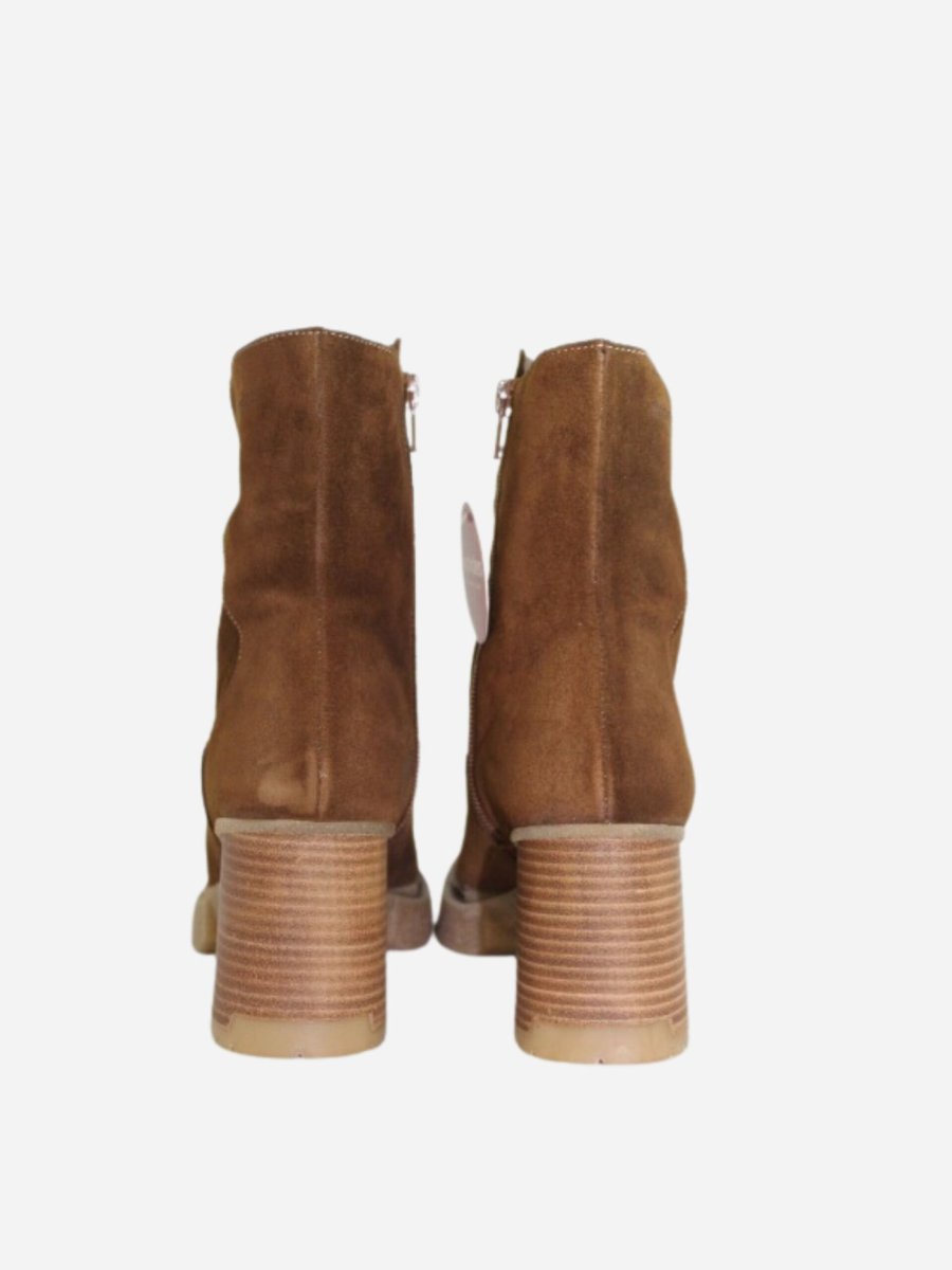 Tronchetto da donna by Wonders. Stivaletto realizzato in vera pelle scamosciata. Tacco largo di 8 cm. Chiusura con cerniera laterale.